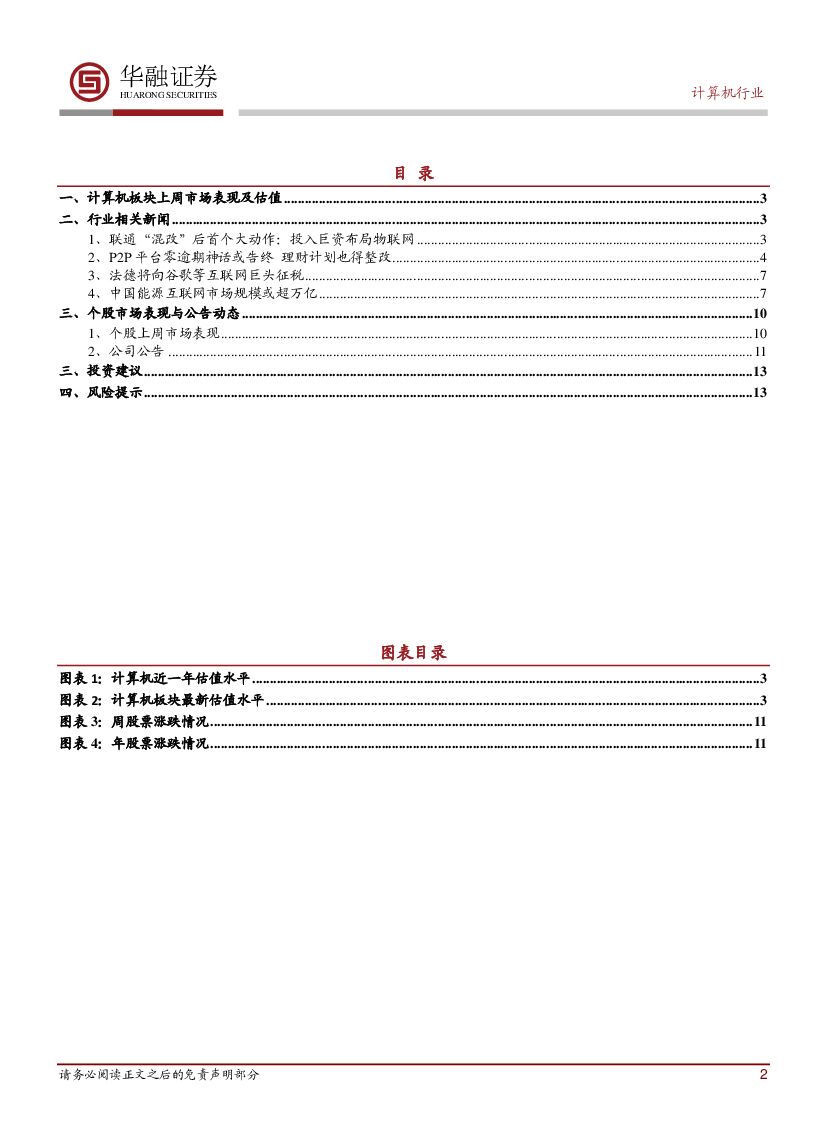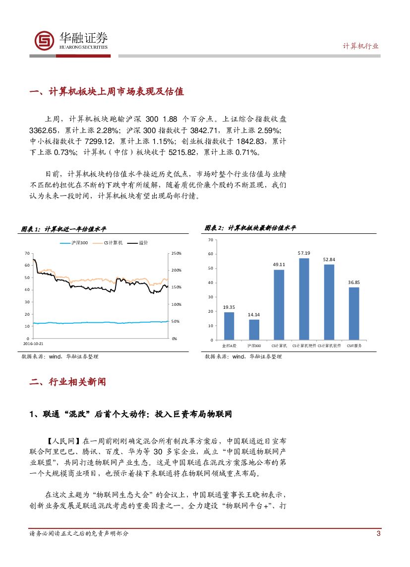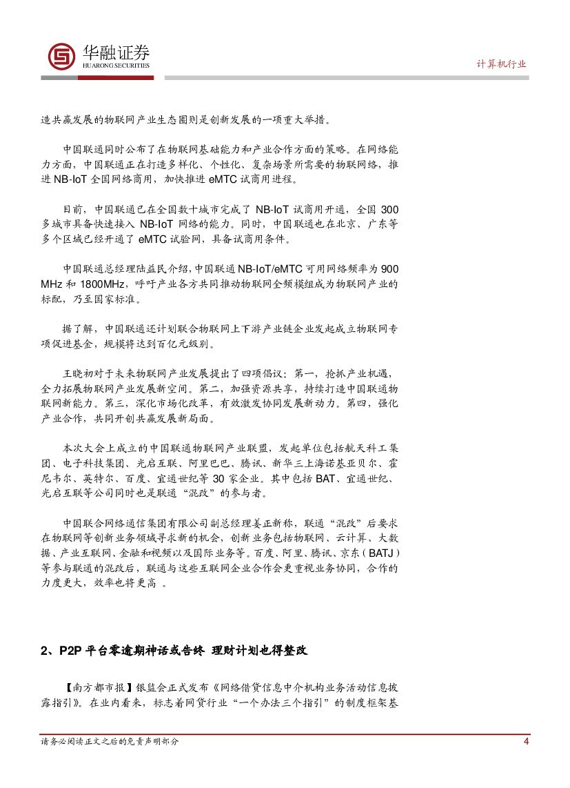 华融证券:计算机行业周报:联通“混改”后首个大动作:投入巨资布局物联网.pdf