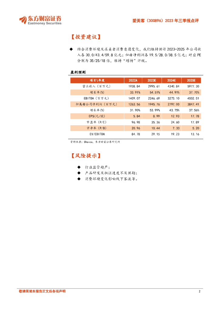 东方财富证券:爱美客(300896)-2023年三季报点评:23Q3增速放缓,期待再生针剂放量.pdf
