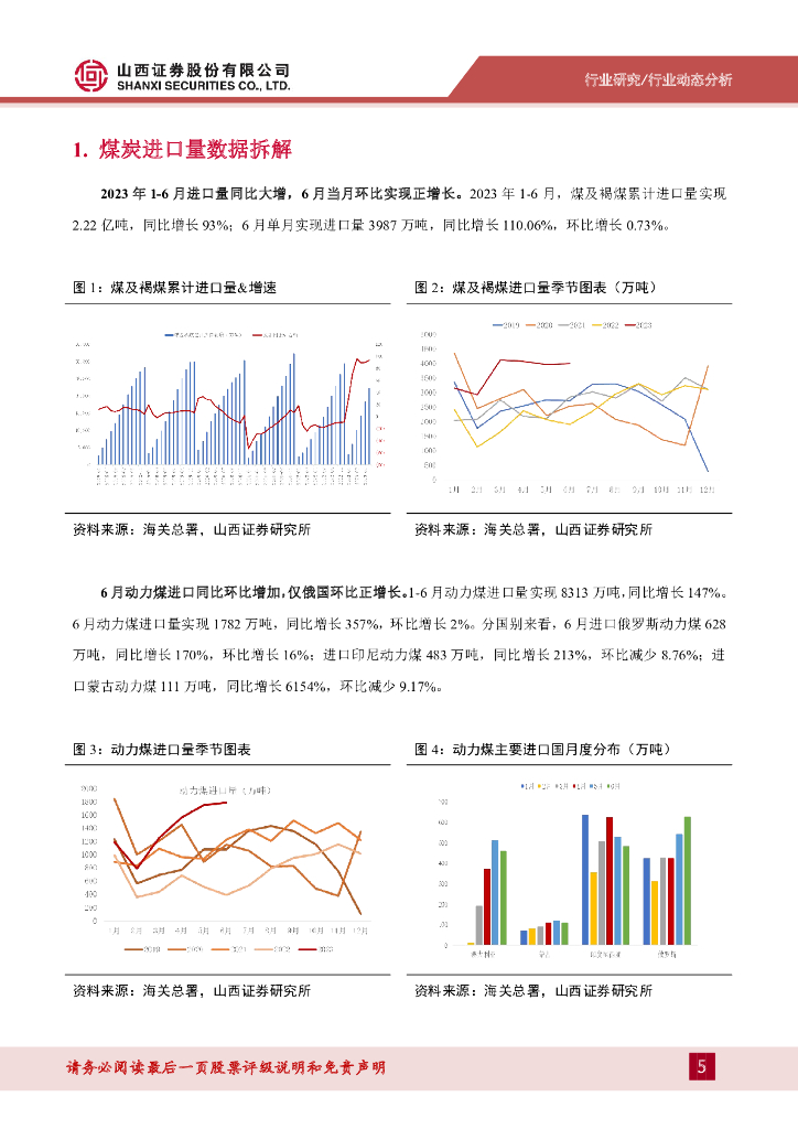 山西证券:煤炭进口数据拆解:印尼煤进口量明显下降,动力煤和炼焦煤进口量环比增加.pdf