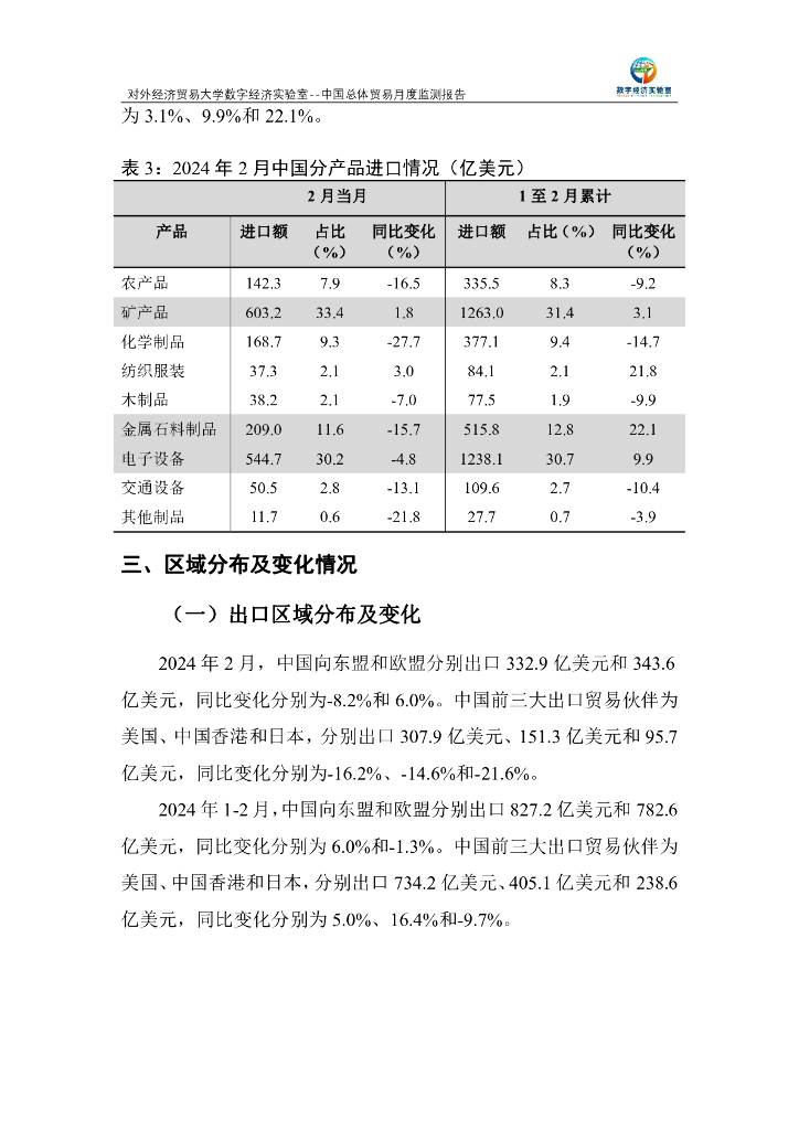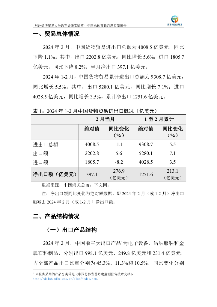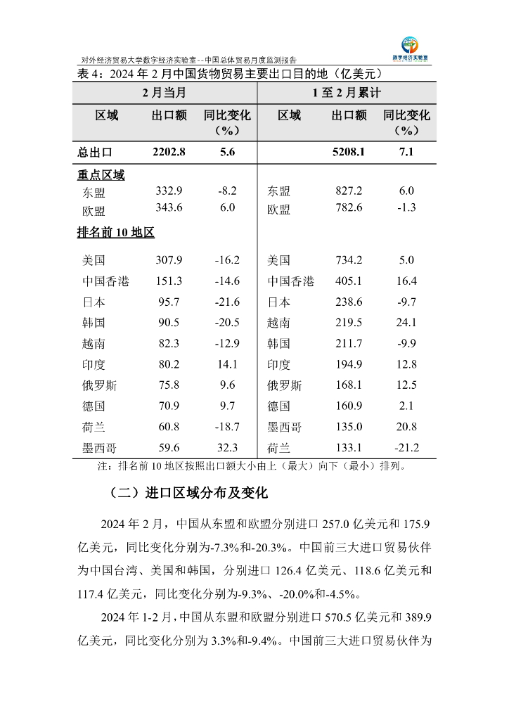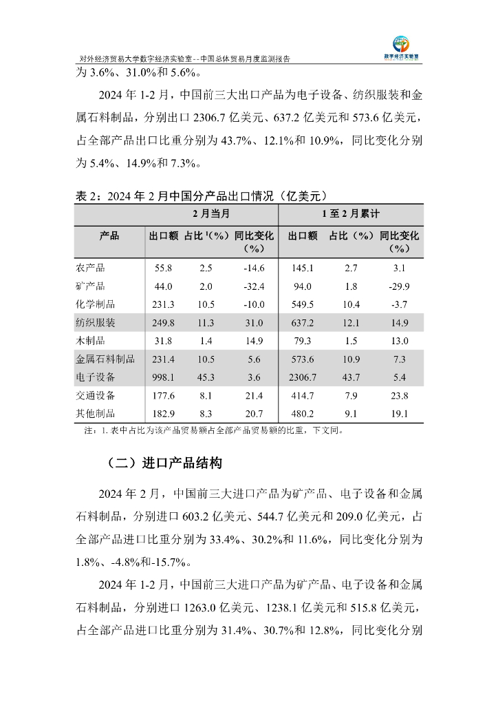 对外经济贸易大学:中国总体贸易月度监测报告(2024年1-2月).pdf