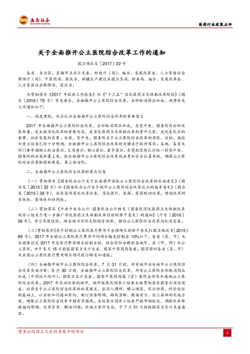 西南证券:医药行业政策点评:公立医院改革全国铺开,行业分化加剧.pdf