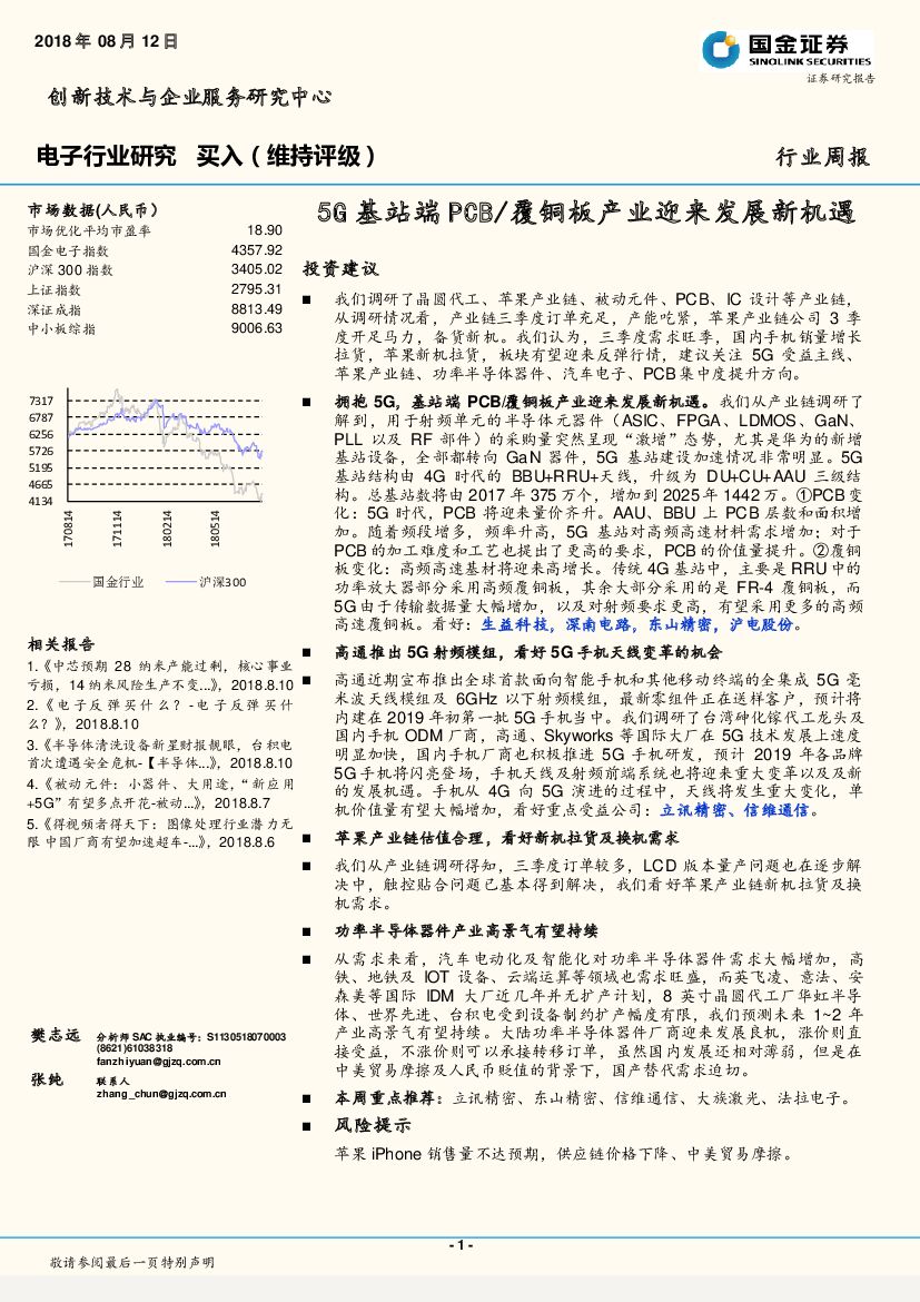国金证券:电子行业研究行业周报:5G基站端PCB/覆铜板产业迎来发展新机遇.pdf