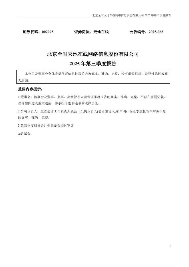 002995-天地在线:2025年三季度报告.pdf