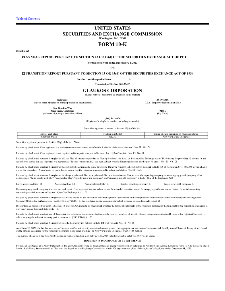 Glaukos Corporation(GKOS)2023财年年度报告(英文版).pdf