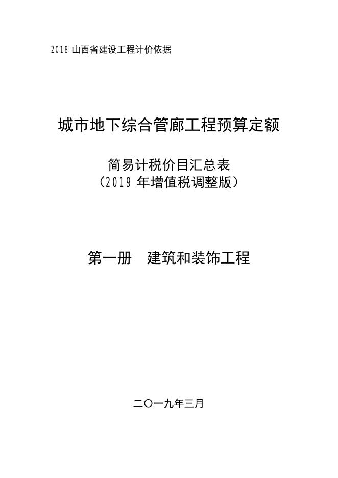 山西省城市地下综合管廊工程预算定额 简易计税价目汇总表(2019年增值税调整版)第一册 建筑和装饰工程.pdf