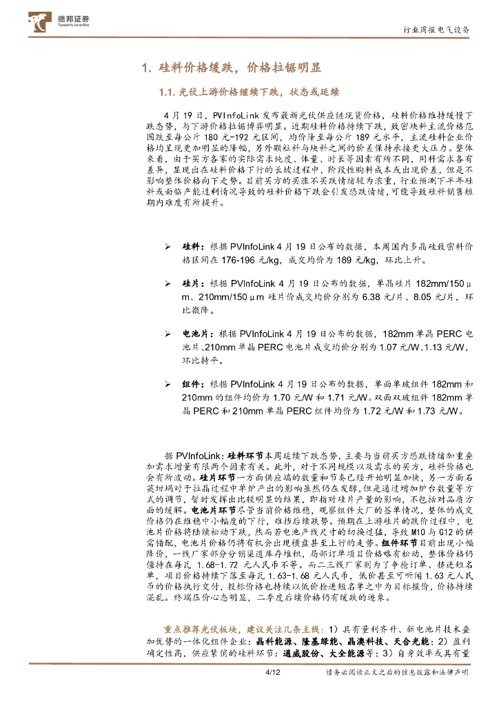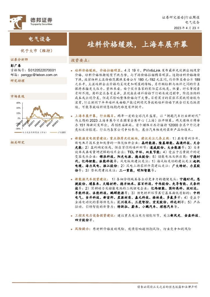 德邦证券:电气设备行业周报:硅料价格缓跌,上海车展开幕.pdf