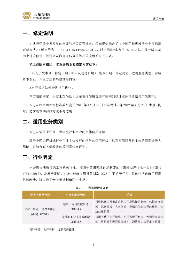远东资信:中国工程机械行业企业信用评级方法.pdf