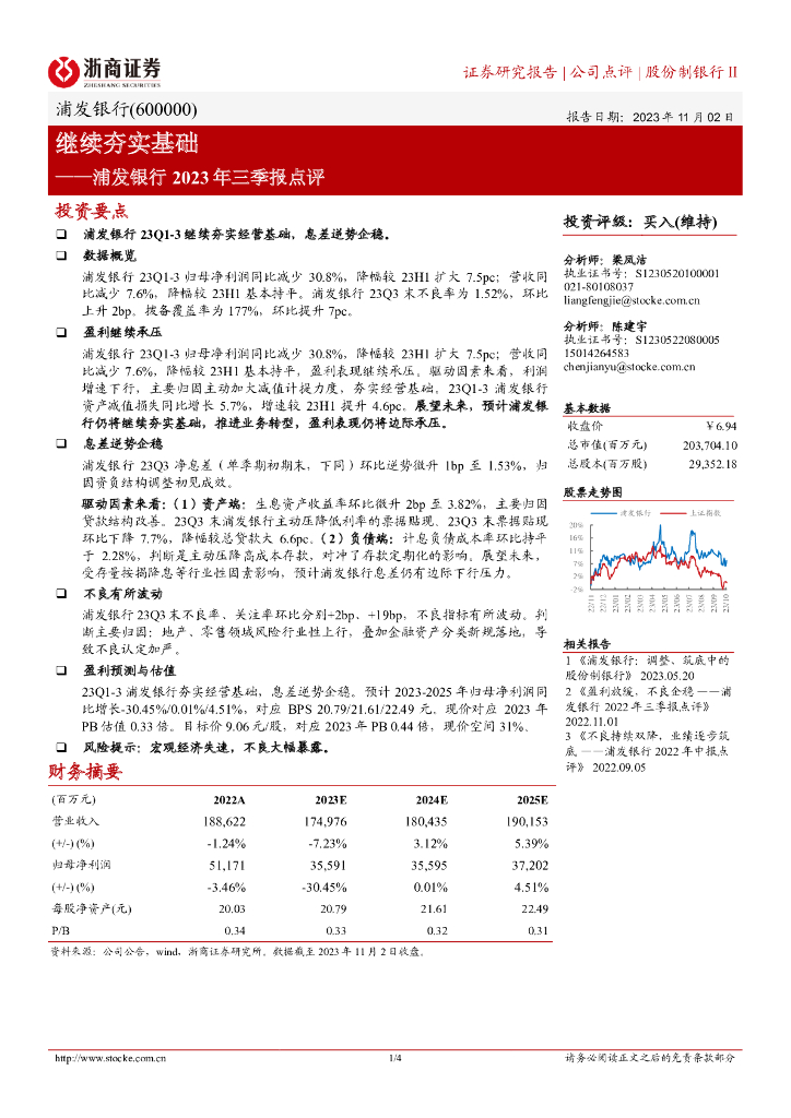 浙商证券:浦发银行(600000)-2023年三季报点评:继续夯实基础.pdf