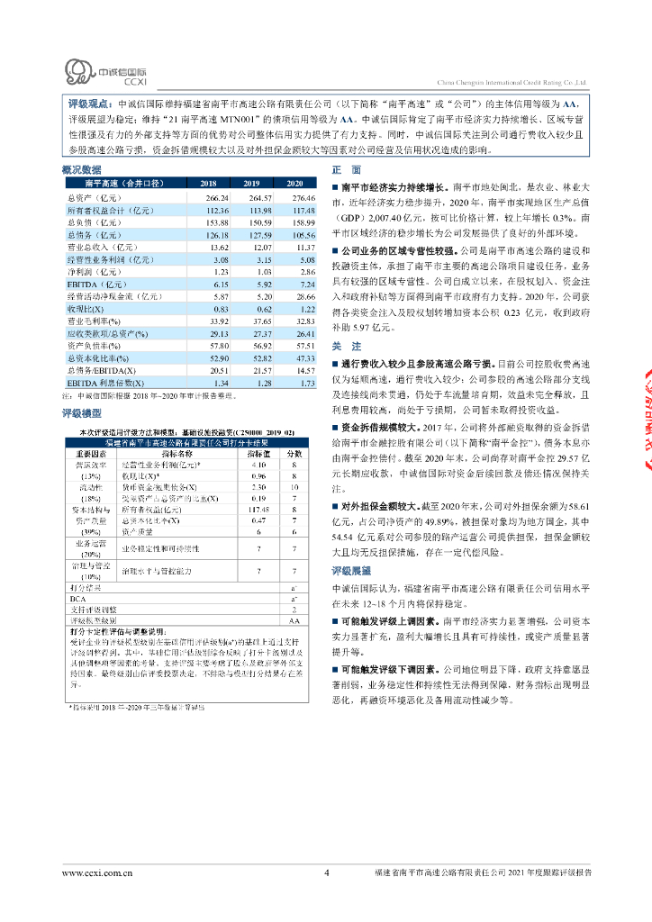 中诚信:福建省南平市高速公路有限责任公司2021年度跟踪评级报告.pdf