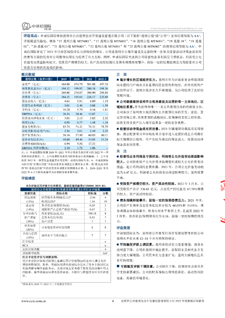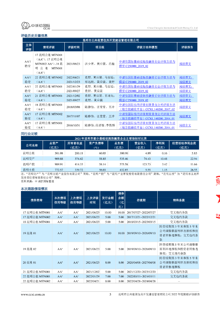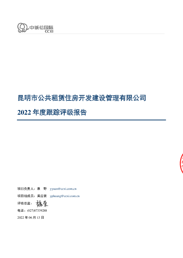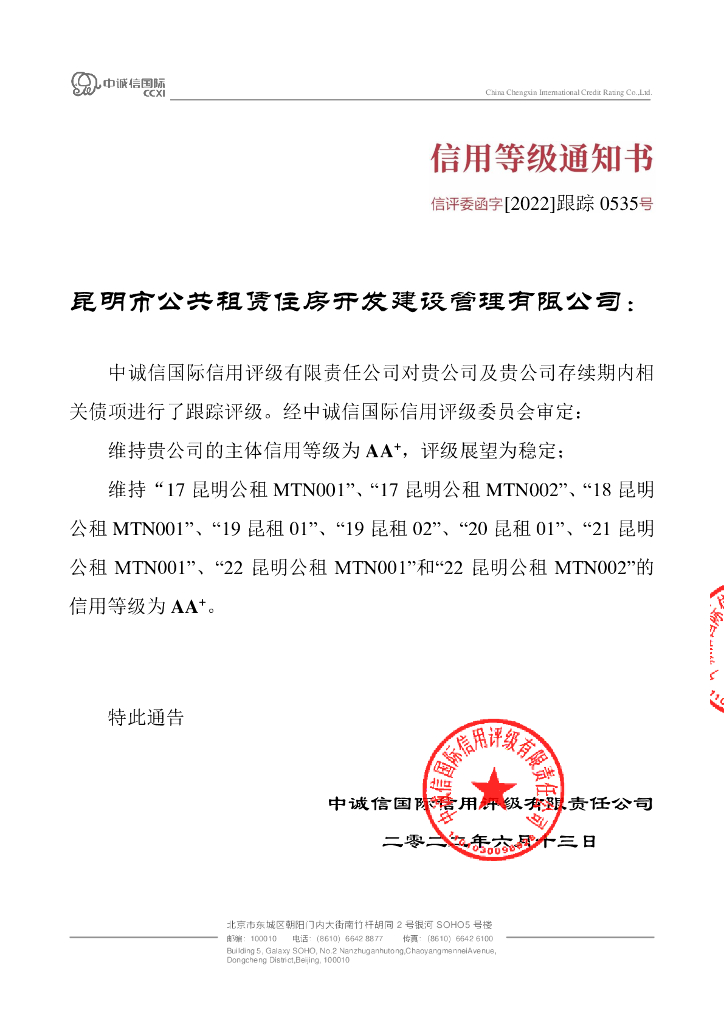 中诚信:昆明市公共租赁住房开发建设管理有限公司2022年度跟踪评级报告.pdf
