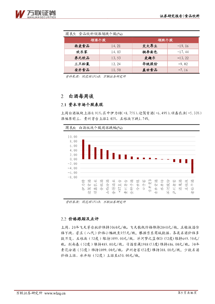 万联证券:食品饮料行业周观点:多家酒企发布业绩报告,茅台引领酒业复苏.pdf