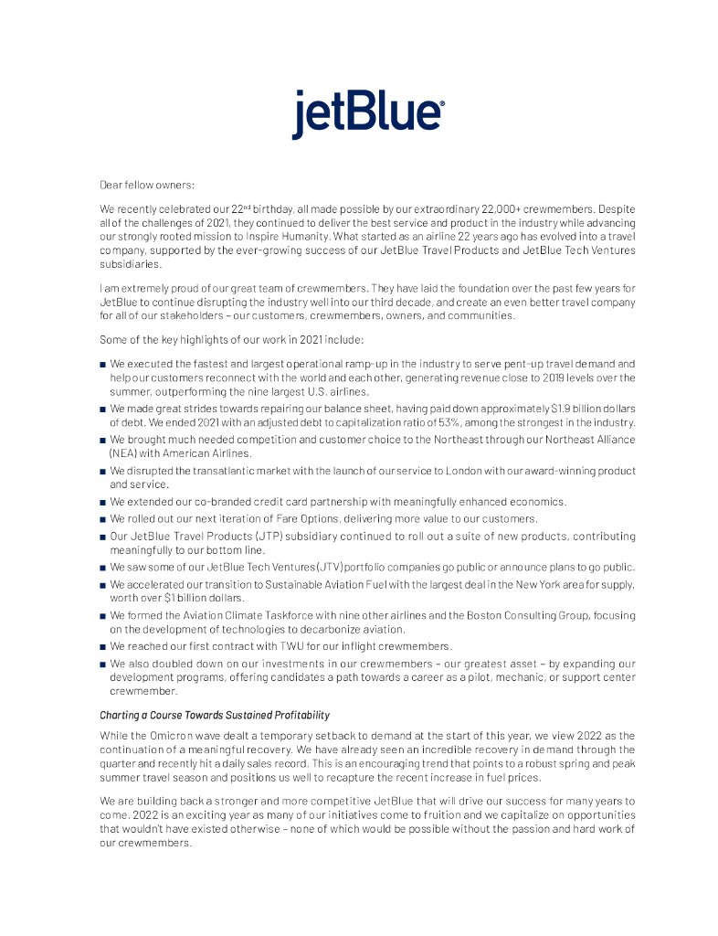 JetBlue Airways Corporation(JBLU)2021财年年度报告(英文版).pdf