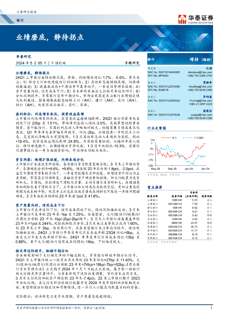 华泰证券:银行业专题研究:业绩磨底,静待拐点.pdf