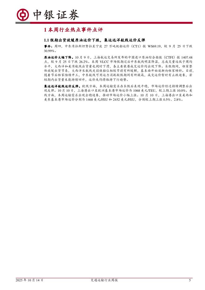 中银证券:交通运输行业周报:假期出货放缓原油运价下跌,2025年国庆中秋假期国际航线恢复.pdf