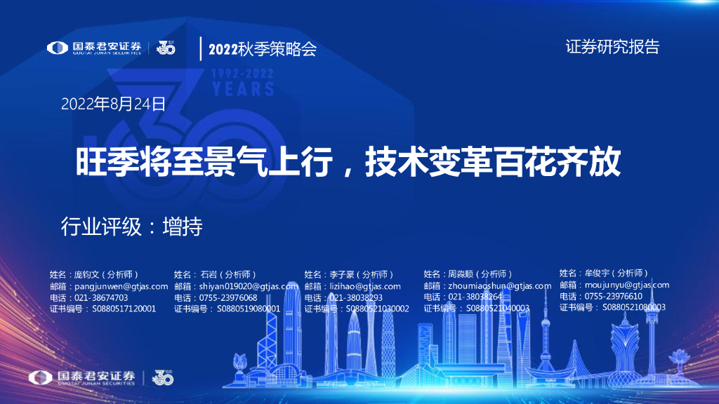 国泰君安:新能源行业2022秋季策略会:旺季将至景气上行,技术变革百花齐放.pdf