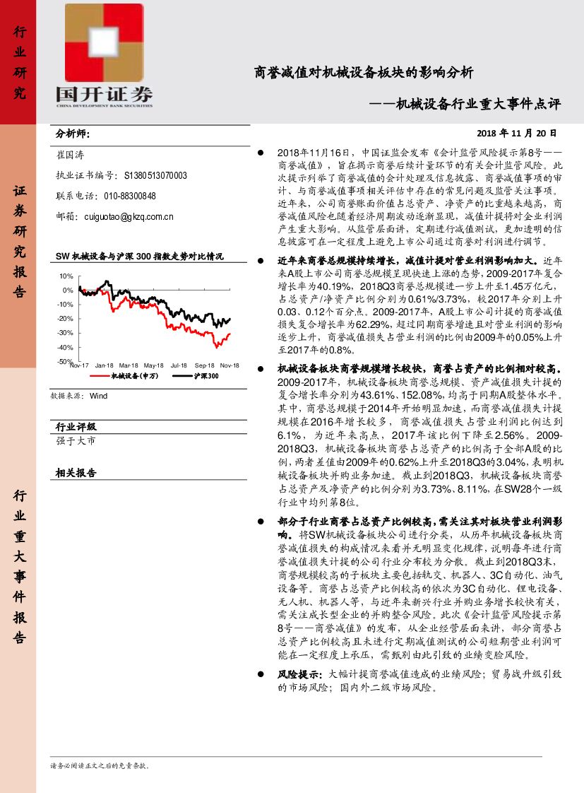 国开证券:机械设备行业重大事件点评:商誉减值对机械设备板块的影响 XIA 分析.pdf