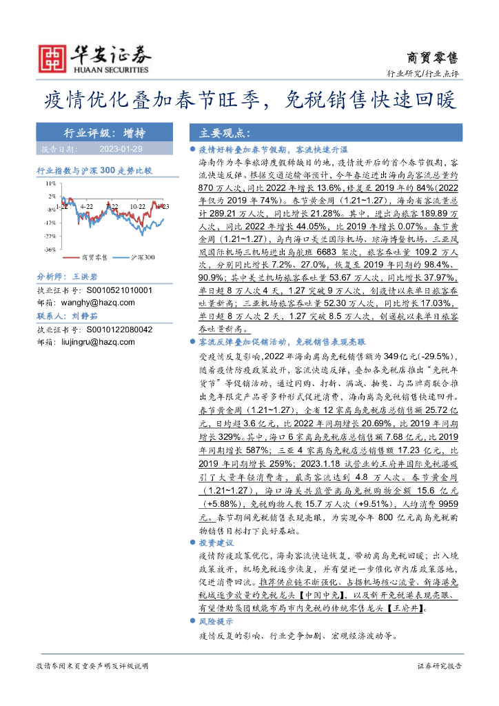 华安证券:商贸零售:疫情优化叠加春节旺季,免税销售快速回暖.pdf