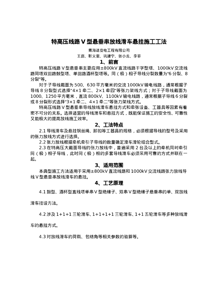 QHGF-2022070 特高压线路V型悬垂串放线滑车悬挂施工工法.doc