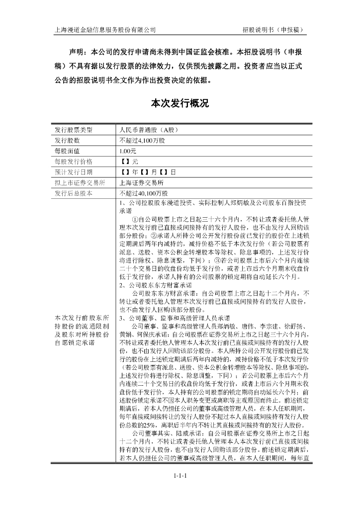 上海漫道金融信息服务股份有限公司上交所主板IPO上市招股说明书.pdf