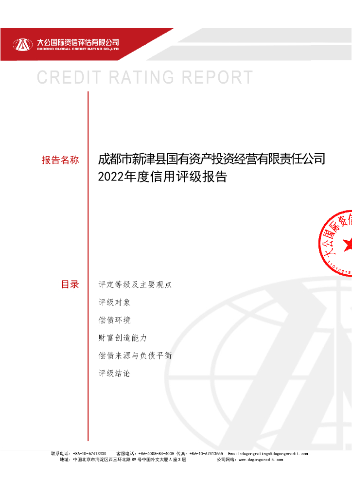 大公:成都市新津县国有资产投资经营有限责任公司2022年度信用评级报告.pdf