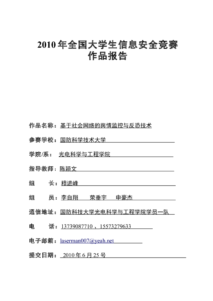 《计算机网络》学生作品-大学生信息安全竞赛---基于社会网络的舆情监控与反恐技术.pdf