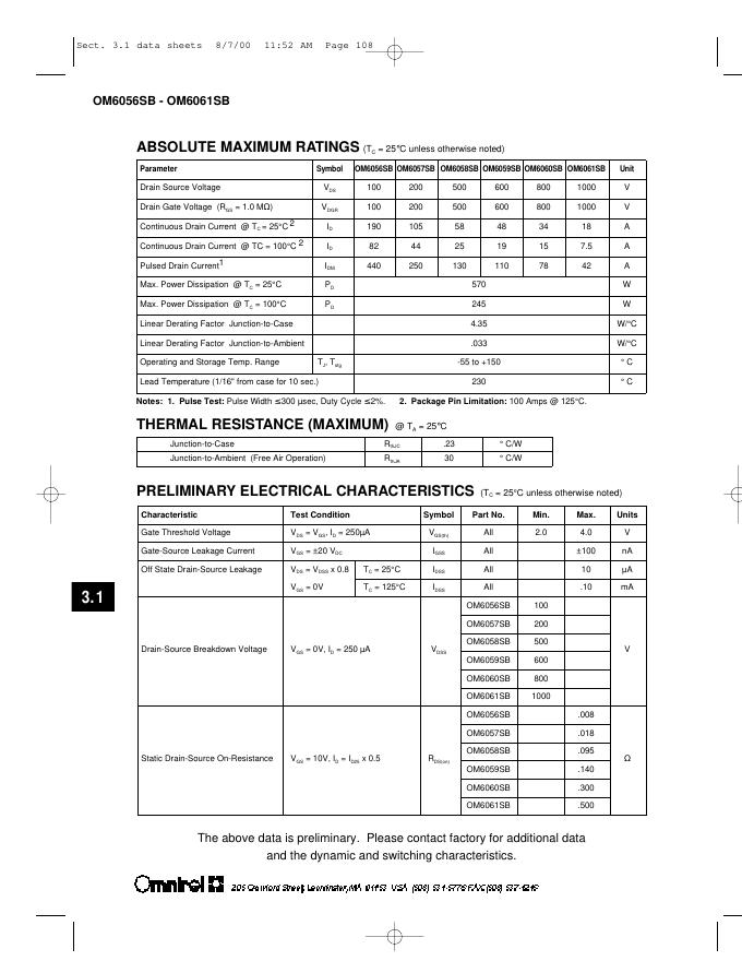 Omnirel OM6056SB OM6057SB OM6058SB OM6059SB OM6060SB OM6061SB 数据手册.pdf