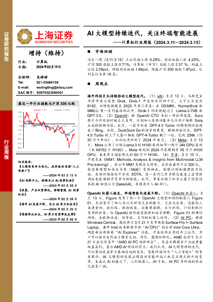 上海证券:计算机行业周报:AI大模型持续迭代,关注终端智能进展.pdf