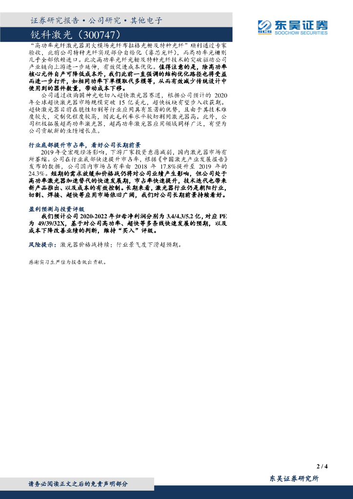东吴证券:锐科激光(300747)-疫情不改龙头确定性趋势,持续看好公司长期前景.pdf