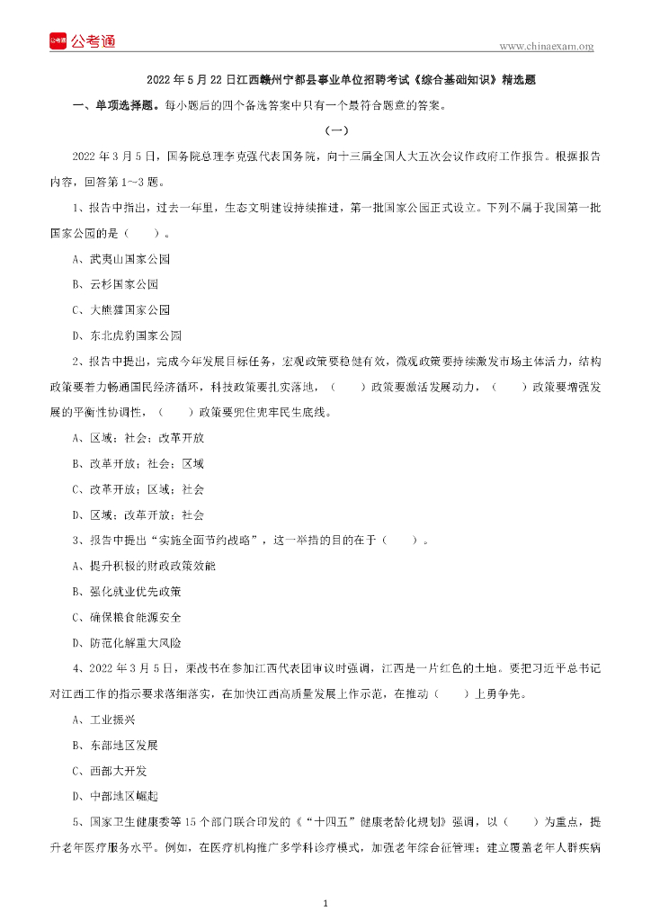 2022年5月22日江西赣州宁都县事业单位招聘考试《综合基础知识》精选题.pdf
