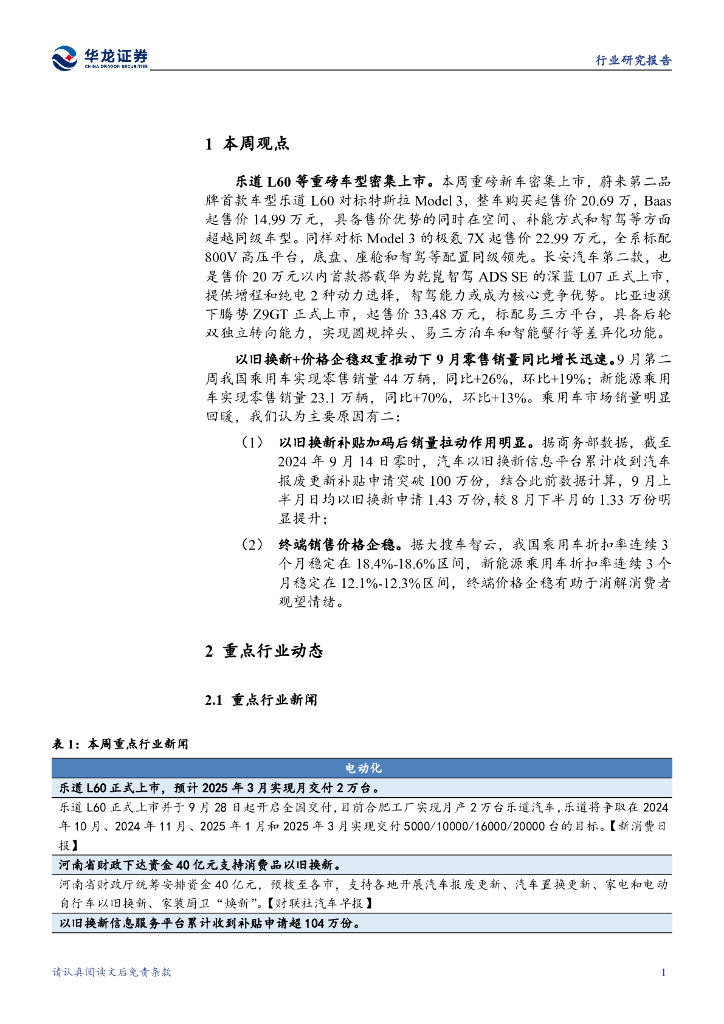 华龙证券:汽车行业周报:重磅新车密集发布,旺季销量增长迅速.pdf