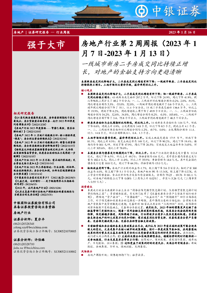 中银证券:房地产行业第2周周报:一线城市新房二手房成交同比持续正增长,对地产的金融支持方向更趋清晰.pdf