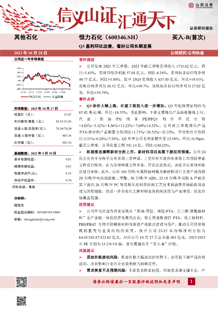 山西证券:恒力石化(600346)-Q3盈利环比改善,看好公司长期发展.pdf