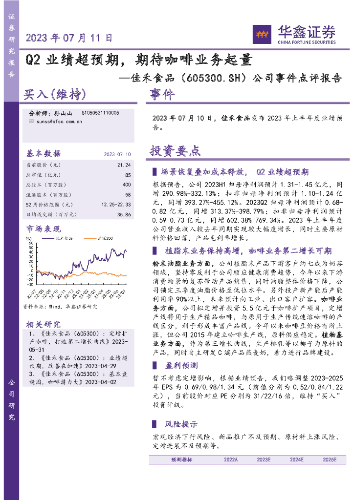 华鑫证券:佳禾食品(605300)-公司事件点评报告:Q2业绩超预期,期待咖啡业务起量.pdf