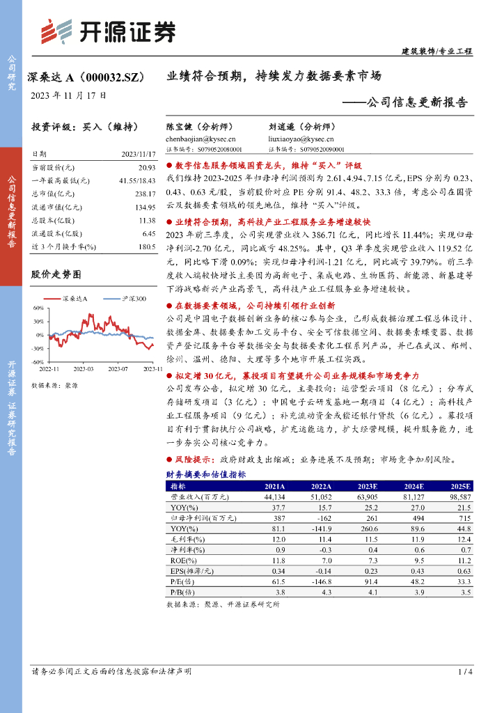 开源证券:深桑达A(000032)-公司信息更新报告:业绩符合预期,持续发力数据要素市场.pdf