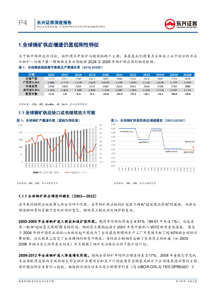 东兴证券:铜行业深度报告(I):矿端供给增速或仍显现阶段性偏刚性特征.pdf