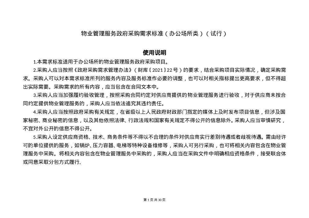 财务部办公厅:物业管理服务政府采购需求标准(办公场所类)(试行).doc
