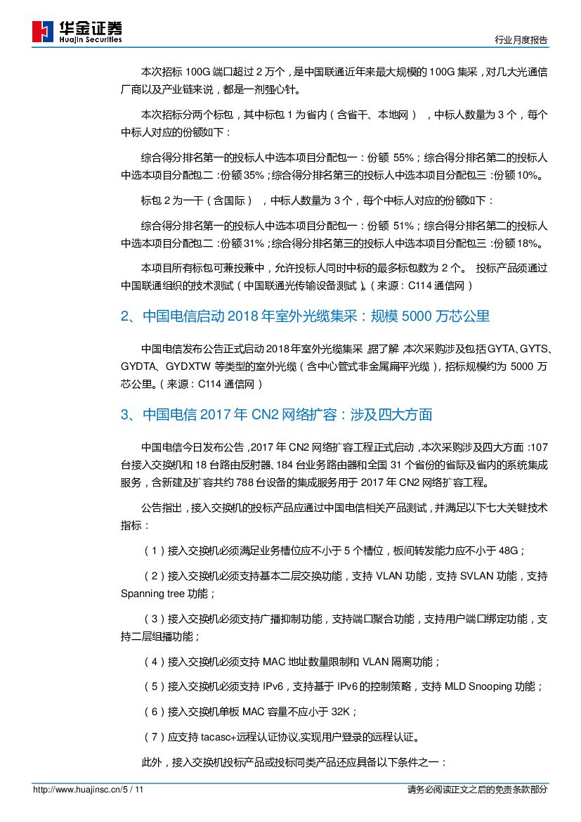 华金证券:通信行业月度报告:政府将加大对基础网络建设的支持,运营商启动新一轮设备采购.pdf