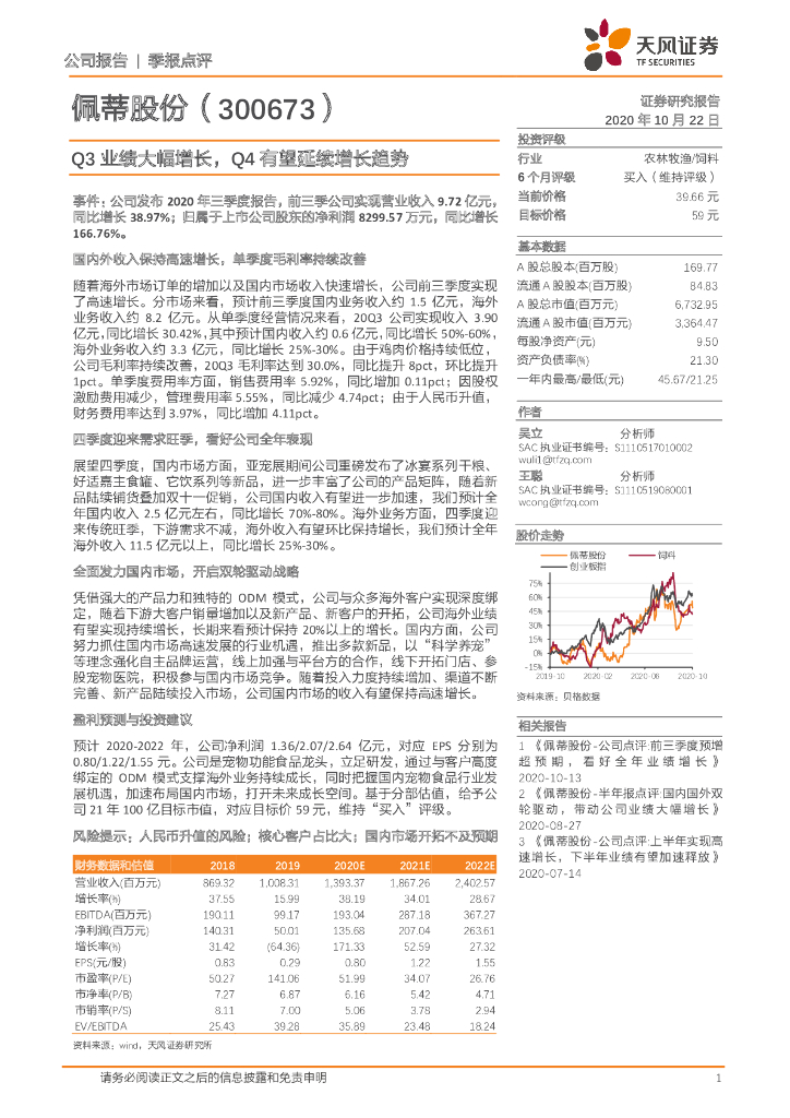 天风证券:佩蒂股份(300673)-Q3业绩大幅增长,Q4有望延续增长趋势.pdf