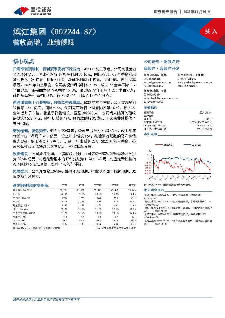 国信证券:滨江集团(002244)-营收高增,业绩靓眼.pdf