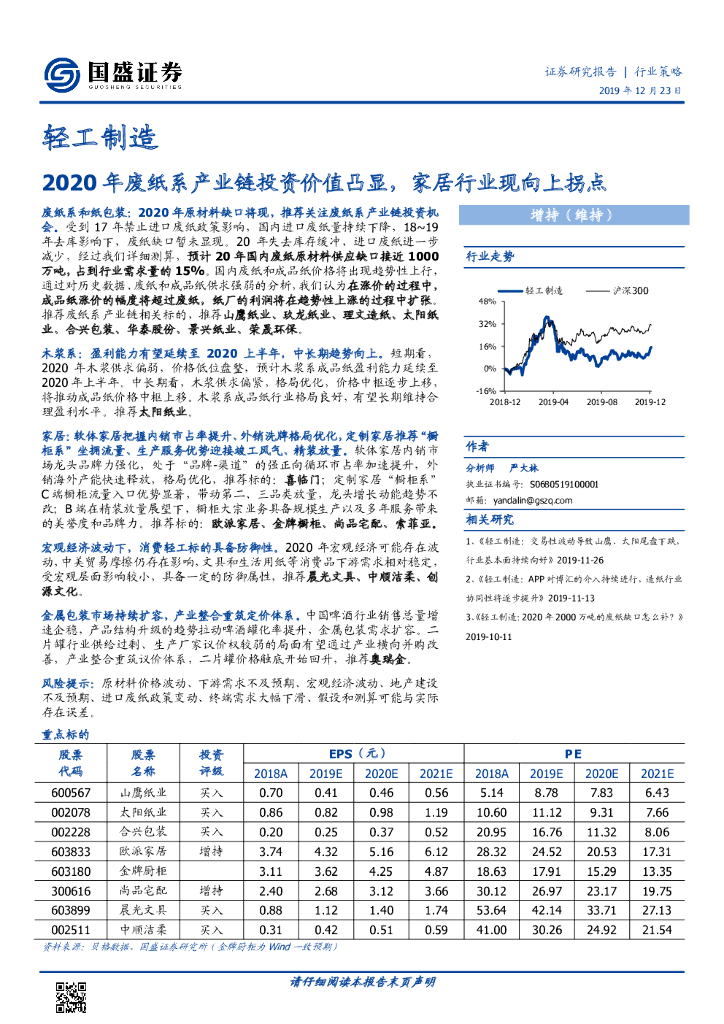 国盛证券:轻工制造行业研究:2020年废纸系产业链投资价值凸显,家居行业现向上拐点.pdf