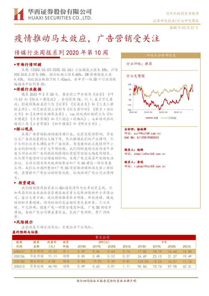 华西证券:传媒行业周报系列2020年第10周:疫情推动马太效应,广告营销受关注.pdf