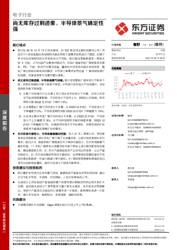 东方证券:电子行业深度报告:尚无库存过剩迹象,半导体景气确定性强.pdf