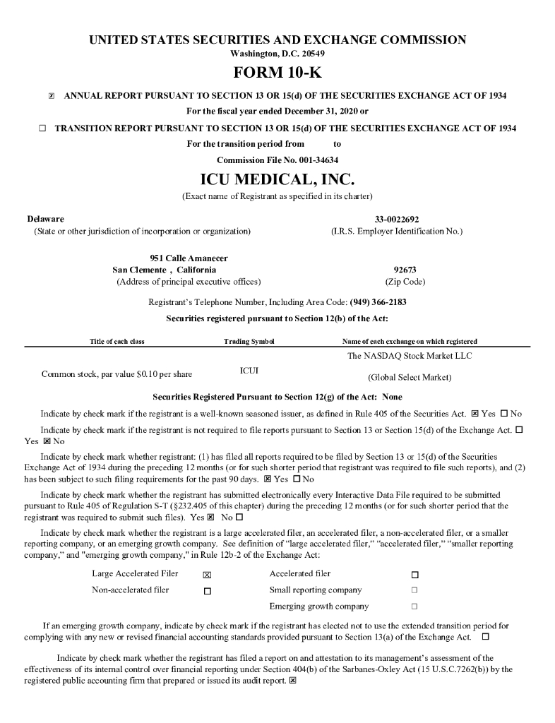 ICU Medical, Incorporated(ICUI)2020财年年度报告(英文版).pdf