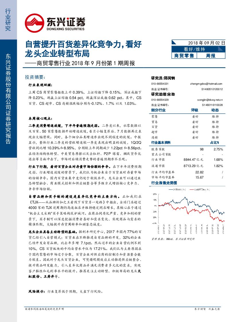 东兴证券:商贸零售行业2018年9月份第1期周报:自营提升百货差异化竞争力,看好龙头企业转型布局.pdf