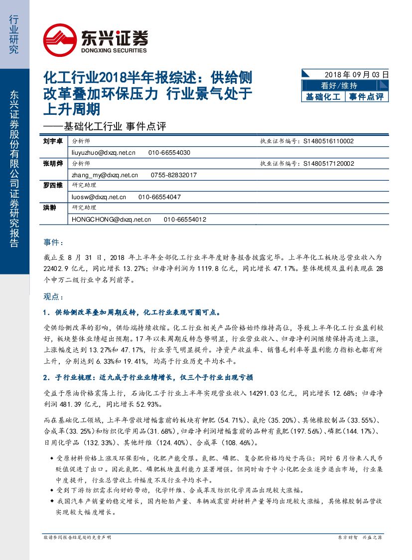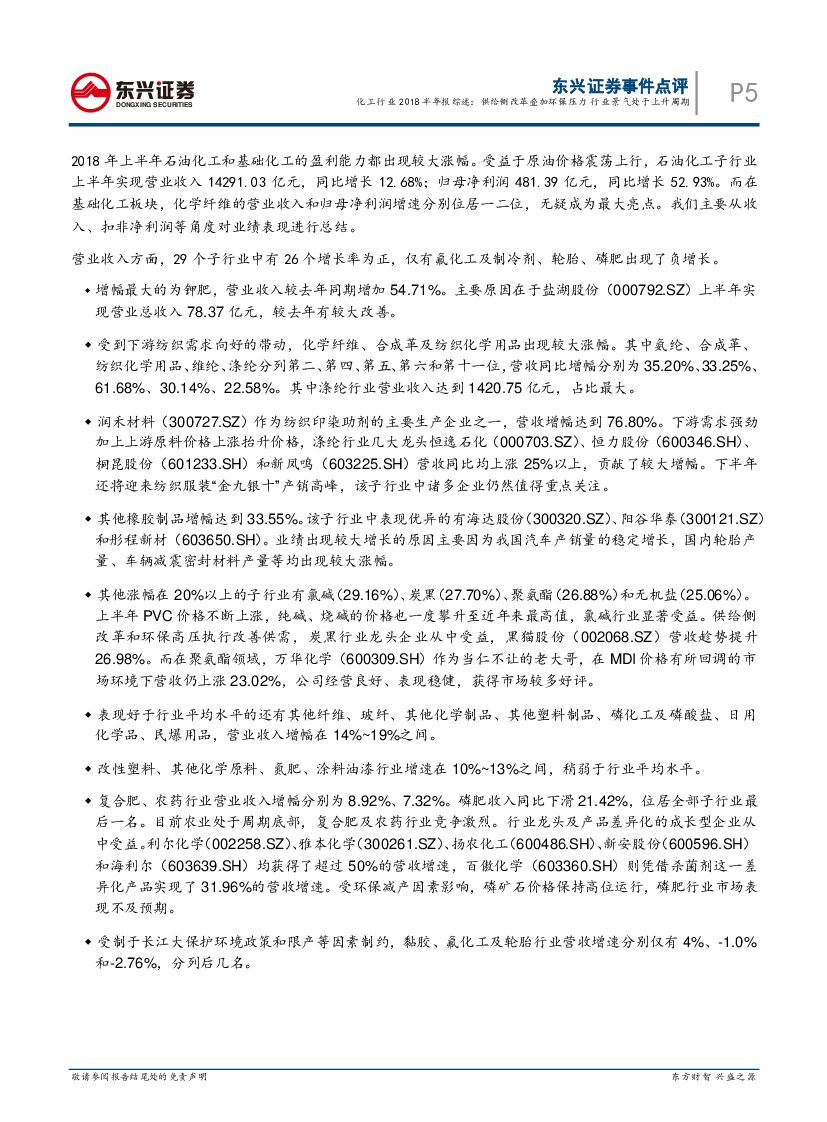 东兴证券:化工行业2018半年报综述:供给侧改革叠加环保压力 行业景气处于上升周期.pdf