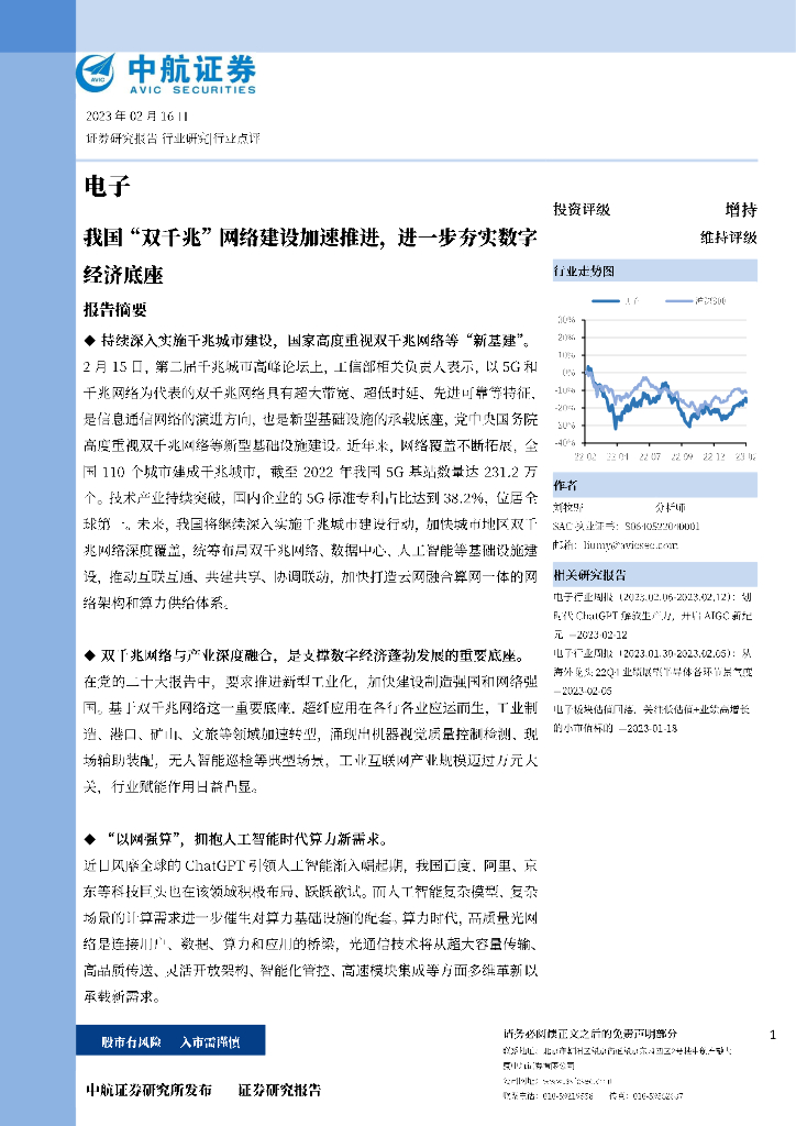 中航证券:电子:我国“双千兆”网络建设加速推进,进一步夯实数字经济底座.pdf