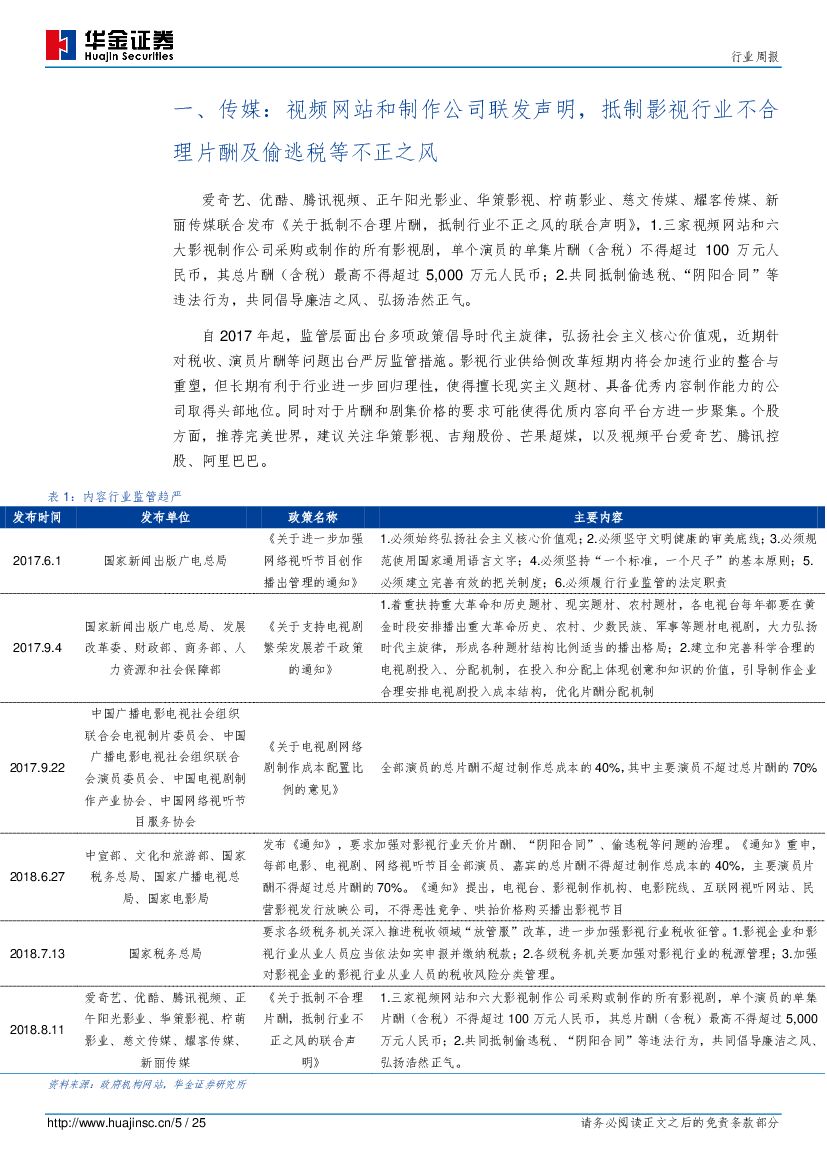 华金证券:传媒行业周报:视频网站和制作公司联发声明,抵制影视行业不合理片酬及偷逃税等不正之风.pdf