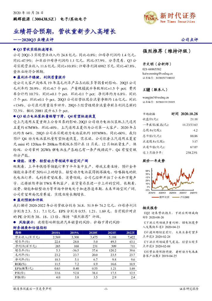 新时代证券:鹏辉能源(300438)-2020Q3业绩点评:业绩符合预期,营收重新步入高增长.pdf