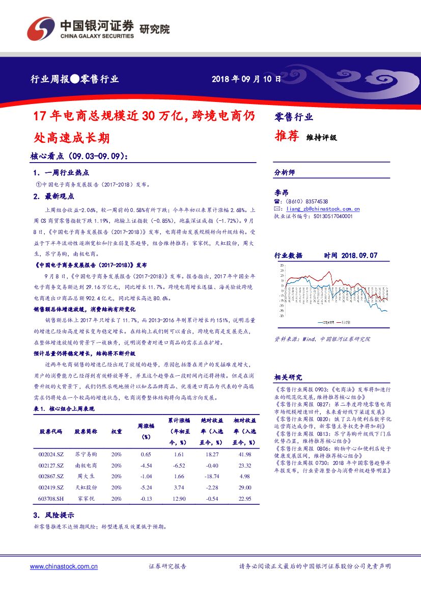 中国银河:零售行业周报:17年电商总规模近30万亿,跨境电商仍处高速成长期.pdf