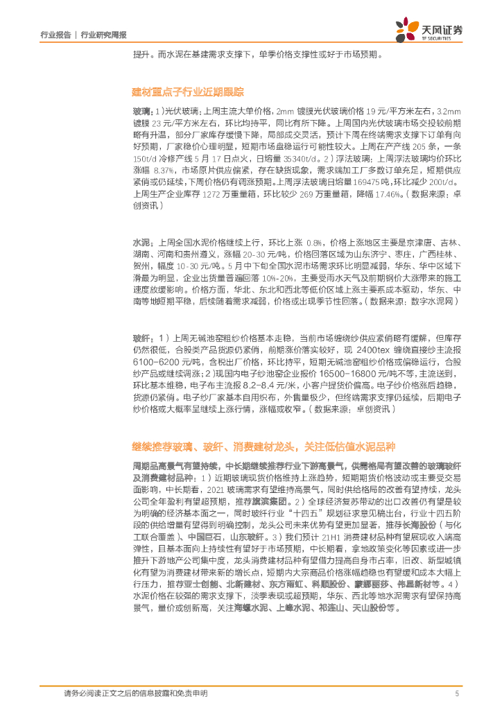 天风证券:建筑材料行业研究周报:同比高基数期来临,周期品/消费建材景气能否持续?.pdf